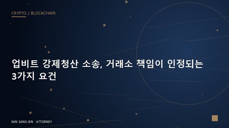 “주문은 냈는데 체결이 안 되더니 청산됐습니다.” 거래소 강제청산 분쟁은 대부분 이 한 문장에서 시작됩니다. 거래소는 약관을 근거로 면책을 주장하지만, 시스템 오류가 입증되면 배상 책임이 인정된 판례가 축적되고 있습니다. 민상빈 변호사가 청산 소송에서 실제로 승소하는 3가지 요건을 정리합니다.